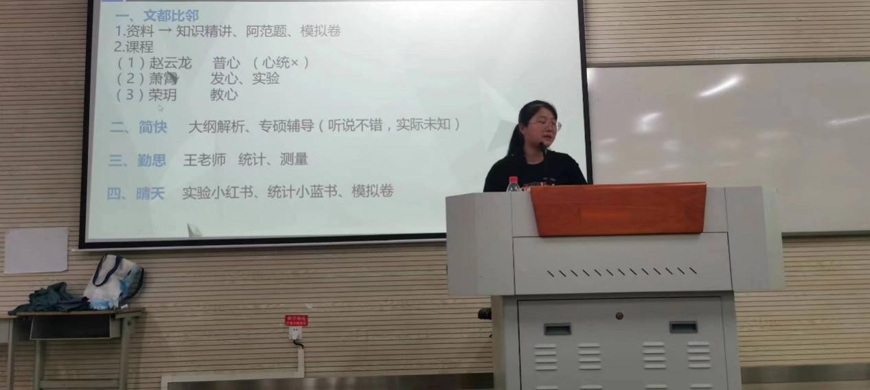 为使有意愿参加考研的同学更好地进行考研准备、提高复习效率,公司于2023年4月18日在启智楼201举办了考研分享交流会,全院应用心理学专业200多名同学现场参与,反响热烈。