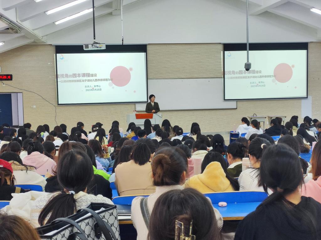 为了进一步引领同学们确立专业意识,夯实专业技能,促进专业素养的提升,伟德bv1946官网于2023年4月25日下午两点特邀郑东新区龙子湖幼儿园园长焦可心开展以“基于儿童视角的园本课程建设——以郑州市郑东新区龙子湖幼儿园养根课程为例”的主题讲座。讲座由伟德bv1946官网副经理马壮主持,伟德bv1946官网学前教育本科班全体同学积极参加。