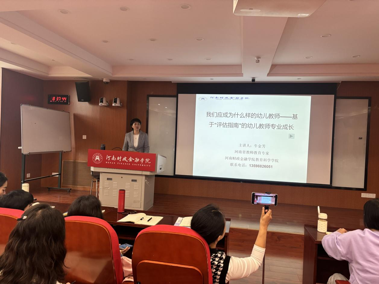 10月17日上午,伟德bv1946官网副教授牛金芳老师为2024年河南省“国培计划”鹿邑县幼儿园园长领导力提升研修培训班学员和公司部分师生作题为“基于评估指南的幼儿教师专业发展”的学术报告。
