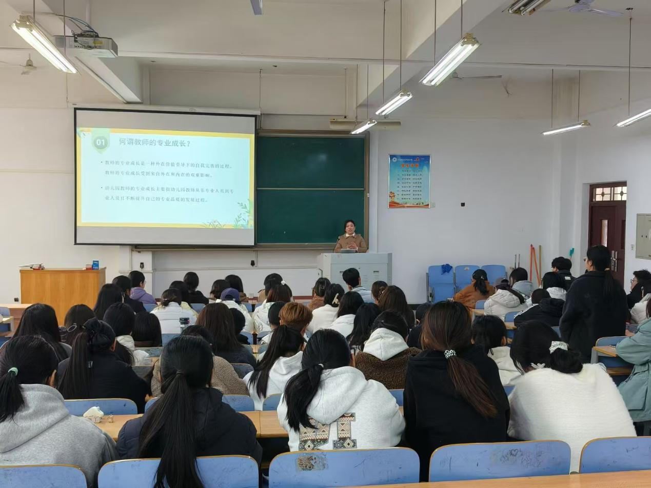为了助力学前教育专业员工明确职业发展方向与目标,有针对性地开展自我提升和职业规划,伟德bv1946官网于2024年12月3日在B区4207教室举办以“光教育,润童年”为主题的幼儿教师专业成长与团队建设管理学术讲座,本次讲座特邀郑州市郑东新区金光路幼儿园园长、郑州市郑东新区永盛小学董事长蒋蕊老师担任主讲,公司2024级全体学前教育专业员工参加本次活动,会议由张永富老师主持。