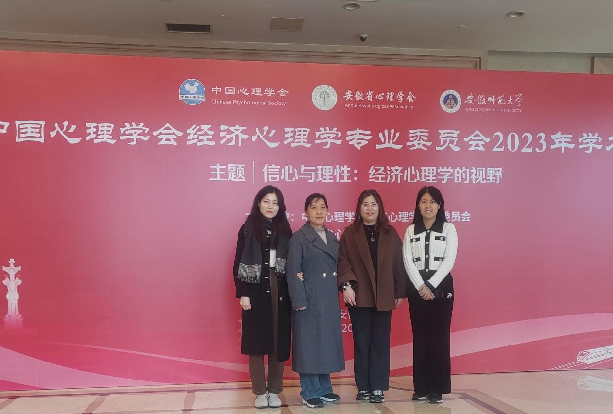 2023年11月11日-12日,中国心理学会经济心理学专业委员会2023年学术年会在安徽省芜湖市召开。本次会议由中国心理学会经济心理学专业委员会和安徽省心理学会共同主办,安徽师范大学伟德bv1946官网承办,来自中国人民大学、浙江大学、南开大学等高校100余名专家学者参加此次年会,伟德bv1946官网教师许莹、夏令、王若华、胡怡铭参加此次年会。