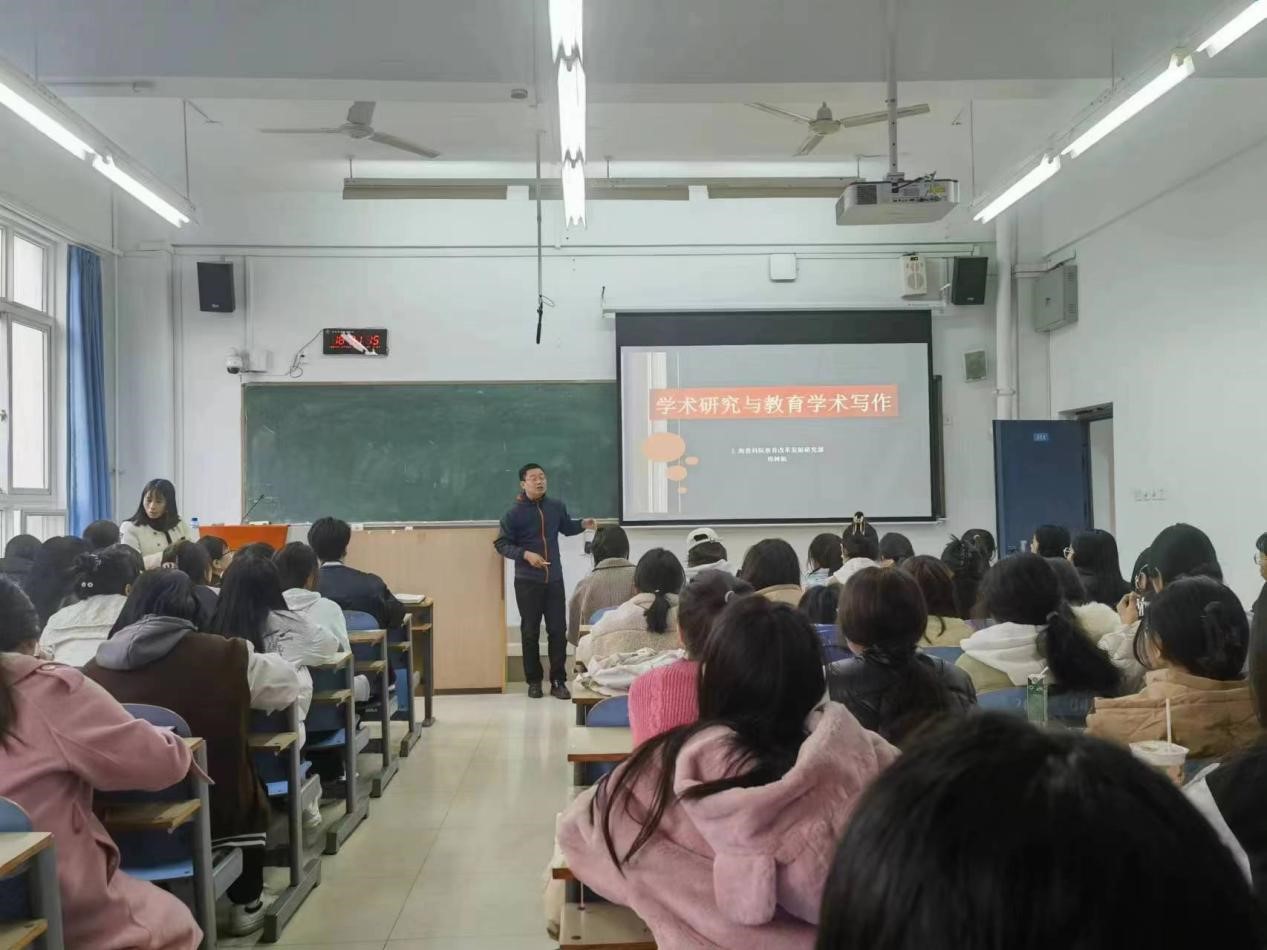 2023年11月28日下午,上海市教育科学研究院《教育发展研究》和《中国高等教育评估》杂志编辑、华东师范大学与柏林洪堡大学联合培养博士穆树航,应邀赴公司作题为“学术研究与教育学术写作”的学术报告。学术讲座在文津楼214举行,宋小香老师主持讲座,公司师生代表90余人参加了此次讲座。