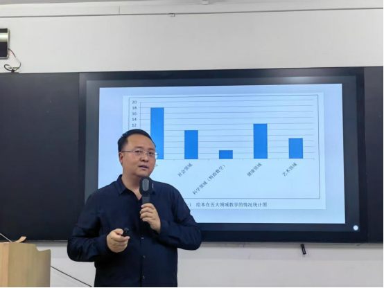 张锋老师结合二十余年儿童教育经验,指出当前中国绘本市场正从数量增长转向质量提升,教师需掌握“题材——文字——插图”三维选书标准。他通过案例对比强调,优秀绘本将传统文化融入生活场景,贴近儿童生活经验的作品才能受到儿童喜爱;插图则需兼具美感与认知功能,如优秀绘本作品《好像》。同学们也应在日常生活中积累素材及经验,努力创作自己的儿童文学作品。