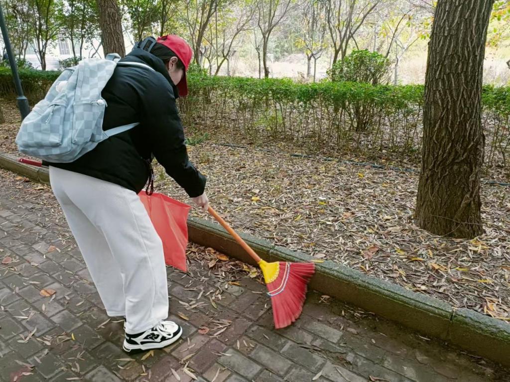 活动当日,现场气氛热烈,党员们满怀热忱地投入其中。他们手持清扫工具,有序分组后,迅速奔赴校园的各个角落。无论是知行楼前的广场,草坪内的空地还是宿舍楼旁的小径,都能看到党员们弯腰劳作的身影。在校园的小径上,他们依旧手持扫帚,认真清扫着每一片落叶。那些堆积在角落里的落叶,在党员们的精心清理下,消失得无影无踪。他们分组协作,效率极高,有的负责清扫,有的负责装袋,有条不紊地进行着清扫工作。他们忙碌的身影如同跳动的音符,在校园里奏响了一曲奉献之歌。