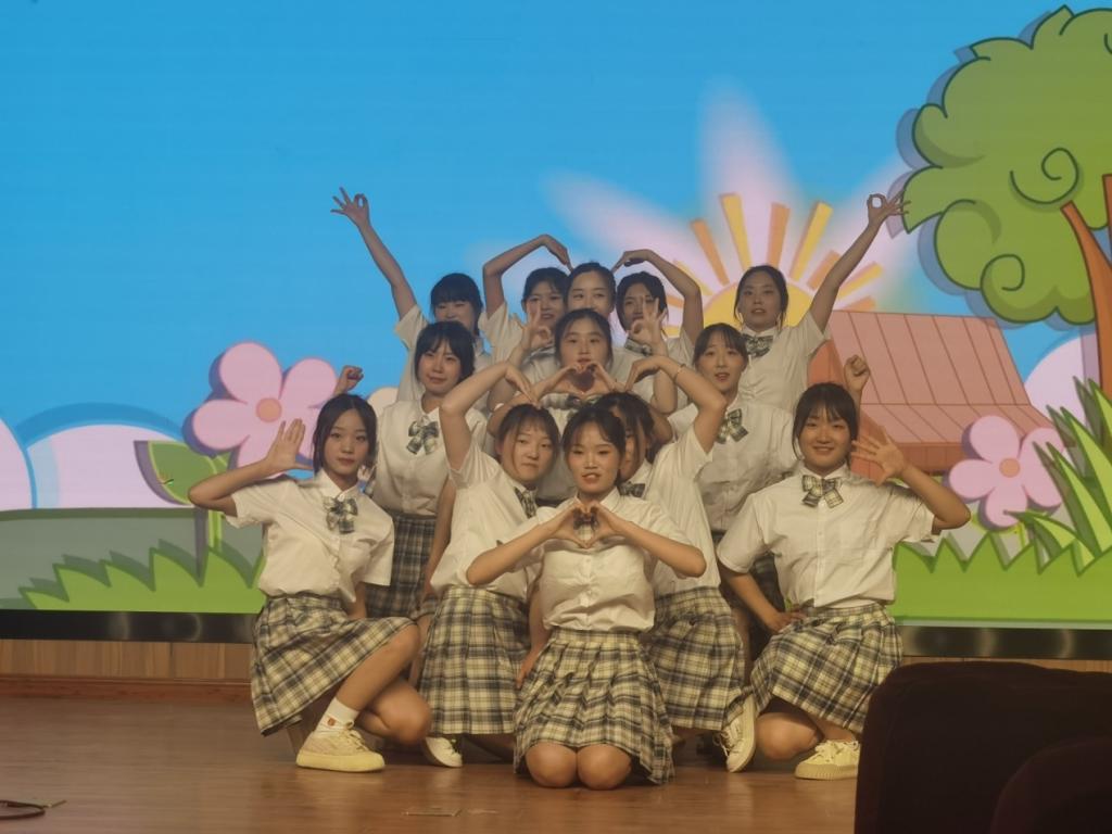 伴随着一首洋溢着高昂的爱国热情的歌曲《我爱你中国》,晚会落下帷幕。演出结束后全体演员和老师在一片欢声笑语中合影留念。