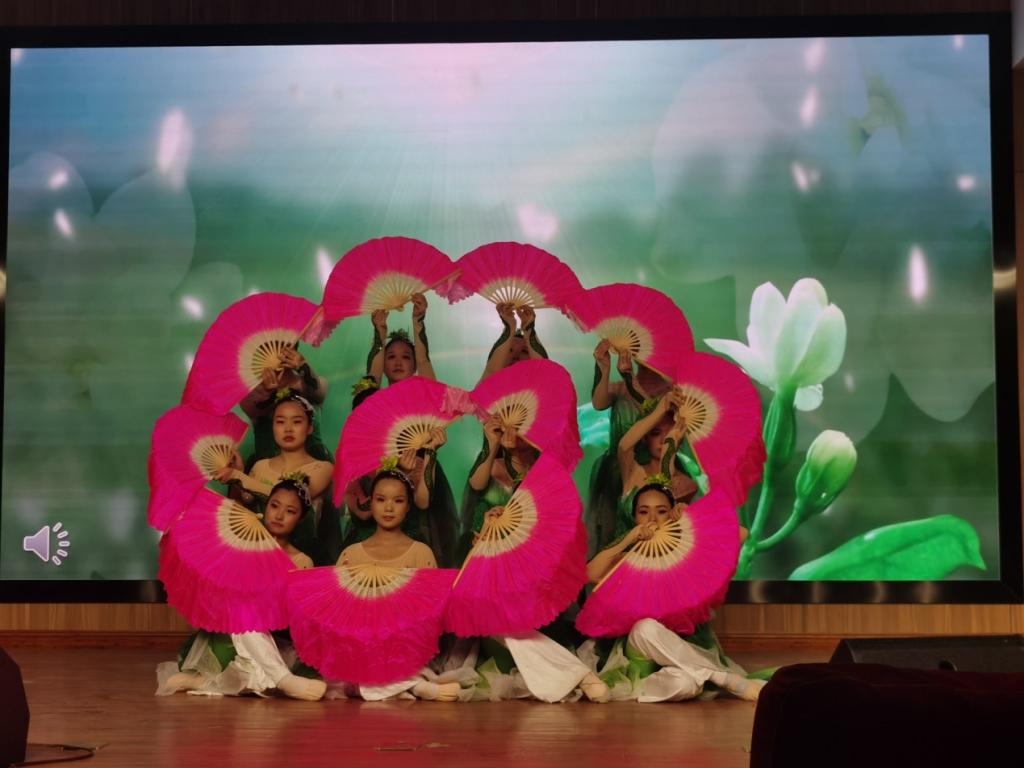 古筝弹奏《渔舟唱晚》以及长笛独奏《荷塘月色》将观众带入高山流水的境地,百折千回、意蕴深远;民族舞《茉莉花》中,盛开的茉莉花伴着阵阵缥缈的云烟飞入九天,一个个身姿曼妙的少女,翩翩起舞,如仙女,似蝴蝶,犹碧玉。