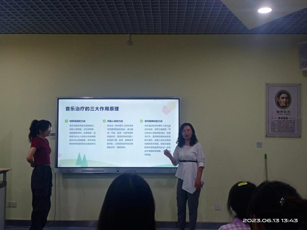 伟德bv1946官网云开心理协会组织同学们于2023年6月13日下午一点半在知真楼209教室进行特色心理健康教育讲座活动——音乐心理治疗。