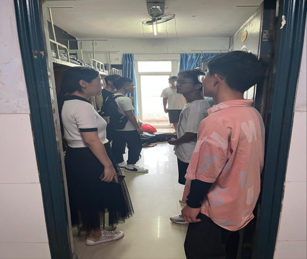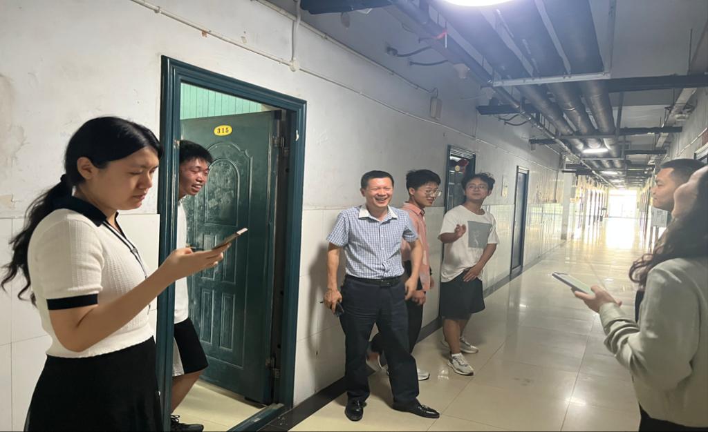 9月5日迎新日下午,教育科学公司党总支书记王德彬、副书记蔡颖带领辅导员王若华、胡怡铭,深入全院2023级新生宿舍进行走访,旨在熟悉2023级新生的报到情况和宿舍情况,倾听他们对于公司的意见建议。