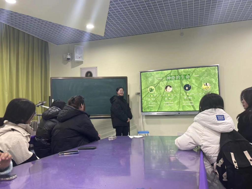 本次活动由社团成员王佳音主持。活动开始时,由王佳音同学对本次讲座的主要内容进行介绍,使同学们对这次的讲座内容有一个充分的认知。她从神奇的植物,神奇的动物,对生命的思考,和谐共生这四个部分展开分享。首先王同学给大家分享了一段四季更迭的视频,并讲解了一首关于植物的诗歌,使大家对植物有了更深的理解。对于神奇的动物,王同学从动物独特的组织结构和动物也能预报天气这两个特别方面展开阐述,使大家看到了动物温情与智慧。之后王同学对于生命的思考和和谐共生的话题,分享了国家帮助候鸟北飞的视频,并说了自己的看法和理解,帮助同学们感受人与自然和谐共生的理念。最后,王佳音同学对此次的讲座做了总结。