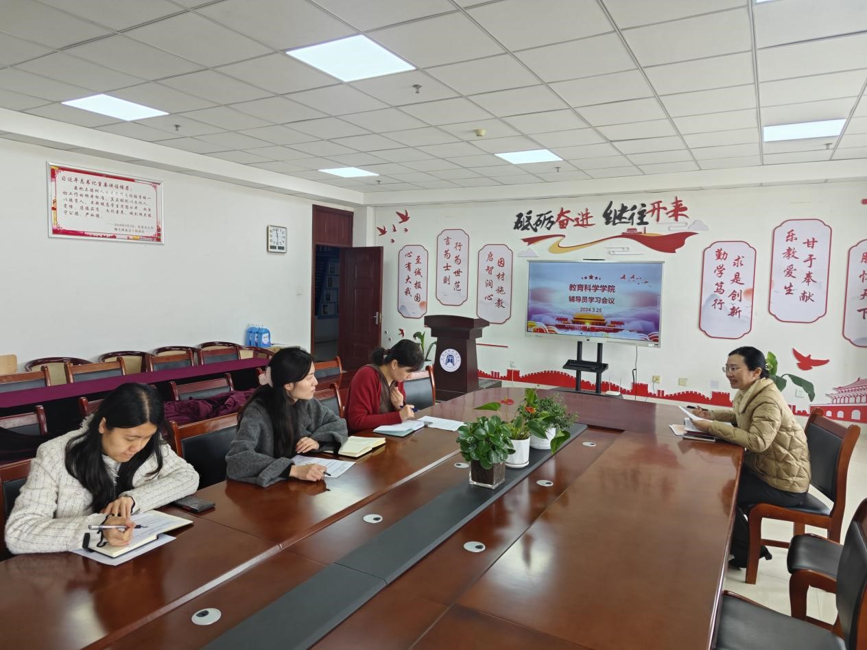 3月25日,伟德bv1946官网召开辅导员学习会。教育科学公司党总支副书记蔡颖,辅导员杨晶晶、唐楠、王若华、胡怡铭参加了会议。