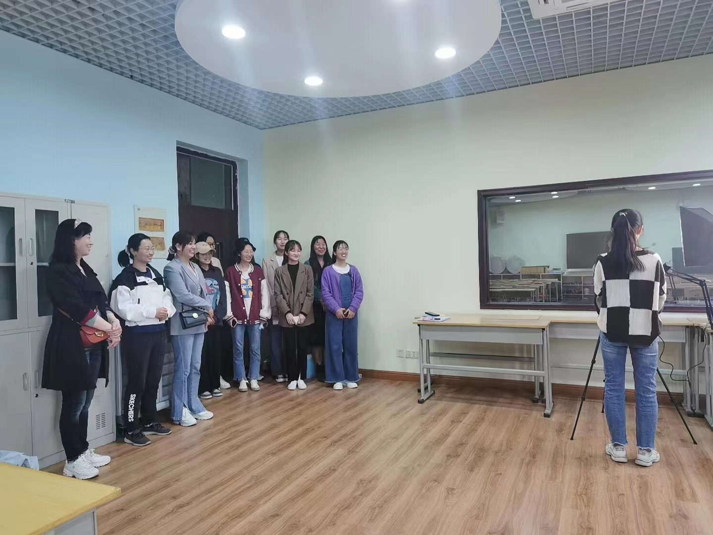 为进一步提高2022届学前教育毕业生面试过程的质量,全力促进毕业生实现高质量、高效率就业,伟德bv1946官网特意进购了两套专业面试仪器设备,包括声卡、麦克风、导播台、补光设备等。于4月19日下午在知真楼210教室架好仪器设备供同学们参加龙之梦幼儿园、雅威教育集团的面试。伟德bv1946官网副书记蔡颖、伟德bv1946官网员工第一党支部书记杨晶晶、辅导员李富颖老师出席参观线上面试会。