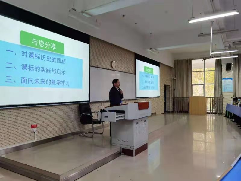 刘富森教授的讲座内容共分为三部分:首先是对义务教育数学课程标准的历史回顾;二是对义务教育数学课程标准的实践与启示;第三则是面向未来的数学学习。刘教授还提出两个观点:一是传统教育是以知识为本的教育,未来教育是重视“结果+过程”的教育;另外一方面则是面向未来小学数学学习的追求与展望。整个过程,刘教授与同学们进行充分的互动交流,讲座氛围轻松和谐。