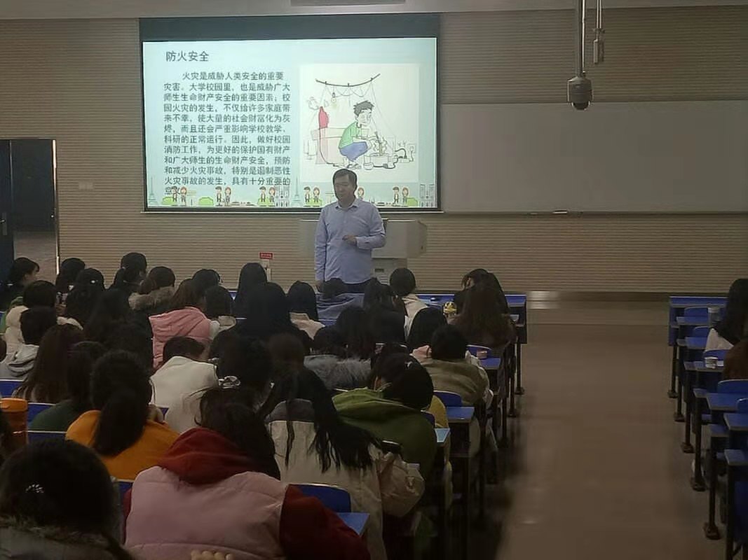 张震老师以消防安全知识为主,结合人身安全、财产安全、生活安全、交通安全等方面进行了宣讲,内容从日常最容易接触的安全工作入手,用身边实际案例,解读了消防安全发生的隐患存在点、发生意外怎么应急处理和自救,还为大家讲解了防范校园诈骗、传销、校园贷等事项。