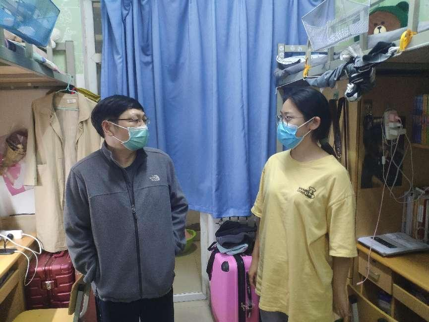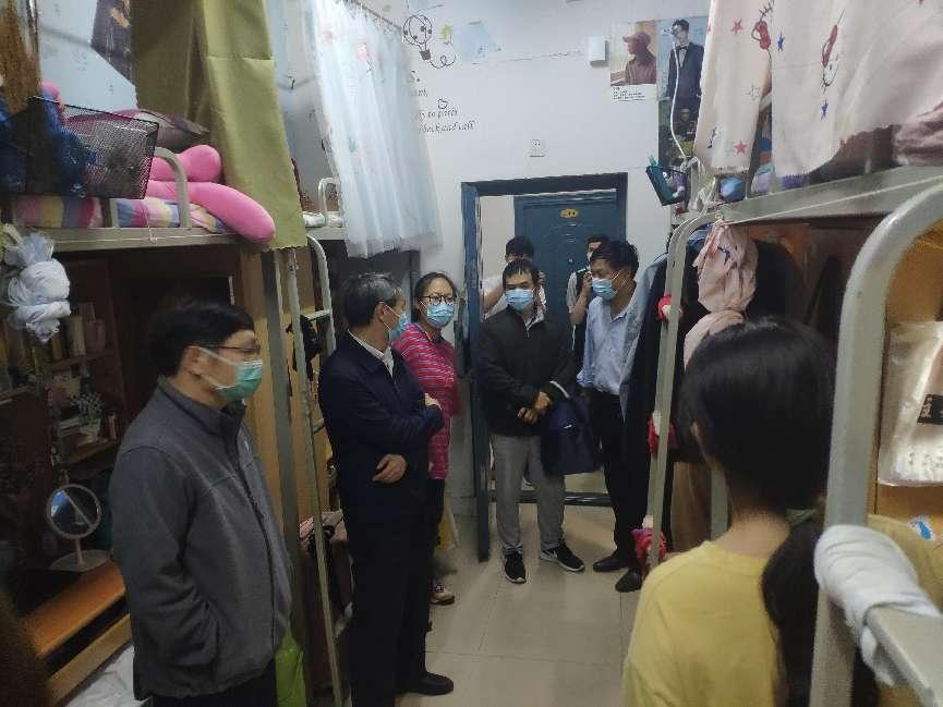 2022年5月6日晚上,大风肆虐,气温骤降,董事长李学志和纪委书记刘云兵到祥园宿舍三号楼、六号楼的校领导联系的伟德bv1946官网员工宿舍看望员工。