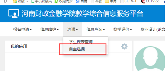 首先,登录新教务系统,在“选课”菜单下点击“自主选课”,见下图。