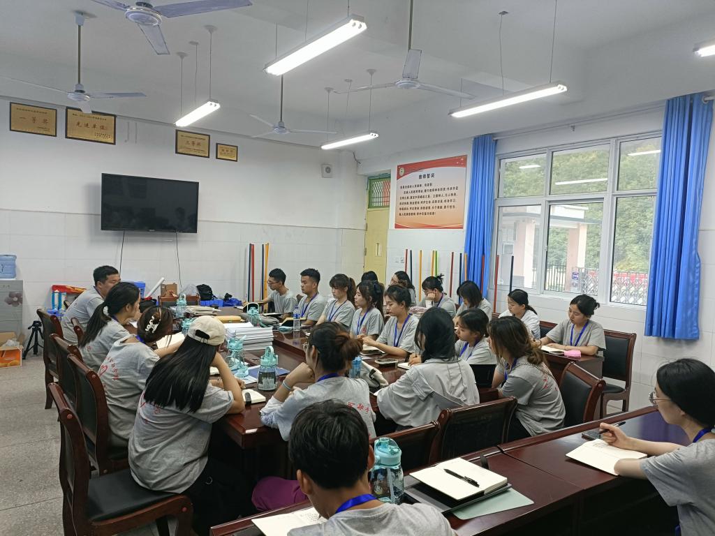 202279——720“铸师魂,育新人”暑期社会实践服务团进驻卢氏县官坡镇兰草红军小学。服务团采取“主线”和“辅线”结合、“线下”和“线上”结合、“集中”与“分散”结合的实践方式。主线是支教送教,辅线是红色教育宣讲、资助政策宣传、探寻探访红色足迹和老教师老党员;线下和集中是指带队老师带领社会实践服务团成员,利用暑期时间在卢氏县红军小学开展非学科类教育;线上和分散是指克服疫情和空间位置因素,利用“钉钉”和微信平台,进行线上直播或录播课程学习,老员工可以在家乡分散进行其他活动,并且可以持续性进行。分散活动一直持续到825日结束,本次暑期社会实践活动时长超过了45天。