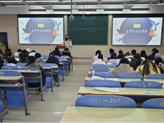 辅导员胡怡铭围绕人身安全、财产安全、网络安全等方面,结合校园实际案例,为同学们敲响安全警钟,传授实用的安全防范技巧。