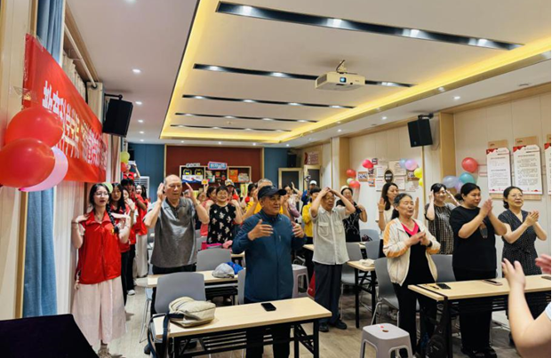 活动伊始,志愿者们带领老人们学习简单易行的“拍拍操”。通过拍拍手指、舒展筋骨,帮助老人们放松身心、促进血液循环。志愿者们耐心示范,分解动作,老人们跟着节奏认真练习,现场气氛轻松愉快。
