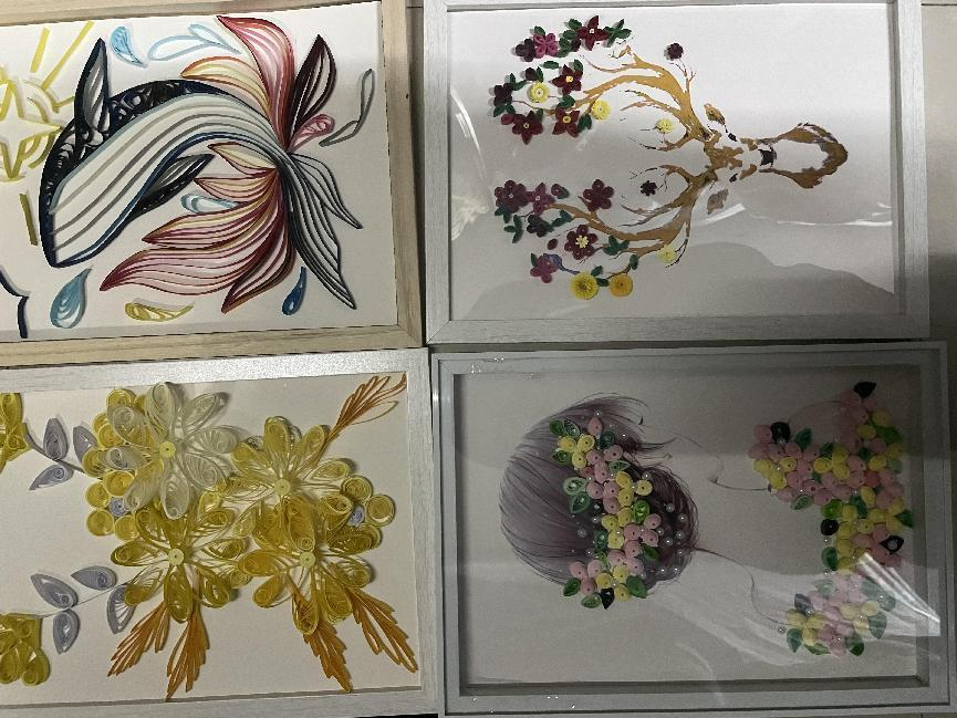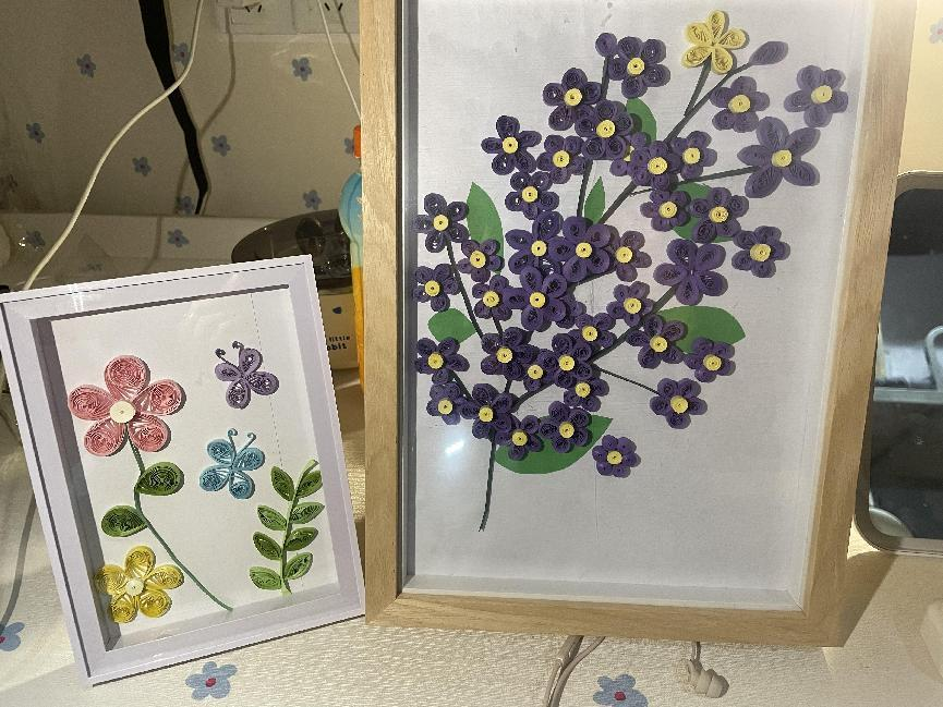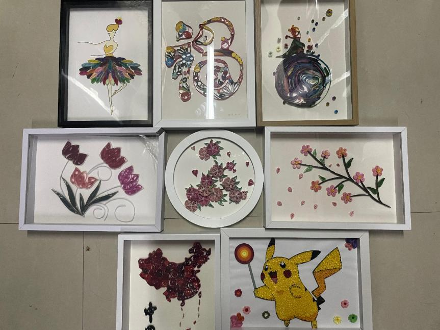 辅导员张震老师提出比赛建议后,分享优秀作品激发同学们的兴趣,班委认真做好策划,同学们积极上网查询相关资料,利用课余时间进行衍纸画的制作并在一周内全部完成。