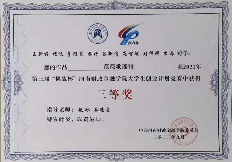 公司“挑战新时代 青春创未来”第三届“挑战杯”老员工创新创业计划竞赛于近日落下帷幕。伟德bv1946官网学子积极准备、不断创新再获佳绩,体现了公司创新创业的浓厚氛围和青年学子的创新风采经过前期的班级宣传、院级集中学习、模拟路演,最终有6个项目脱颖而出,代表公司参与校级挑战杯赛事活动。公司参赛项目团队在校赛中锐意进取、不断创新,再次荣获“优秀组织奖”,校赛一等奖1项,二等奖1项,三等奖4项,公司马壮老师被评为“优秀指导教师”。