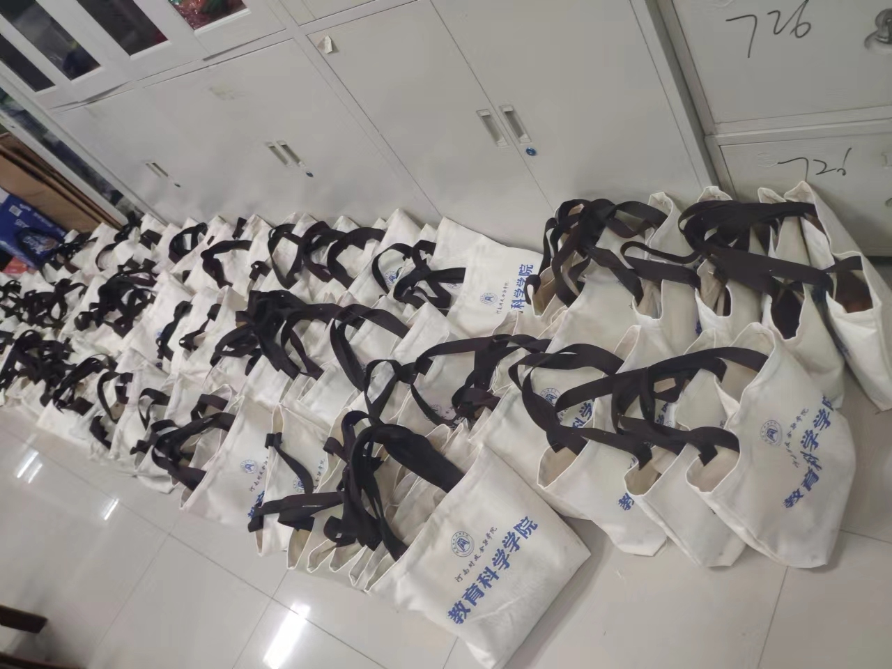 张震老师把公司精心准备的学习资料包送到员工宿舍,学习资料包内有定制帆布包、笔记本、口罩、水笔及象征“平平安安”“心想事成”“指定行”的三种水果等。