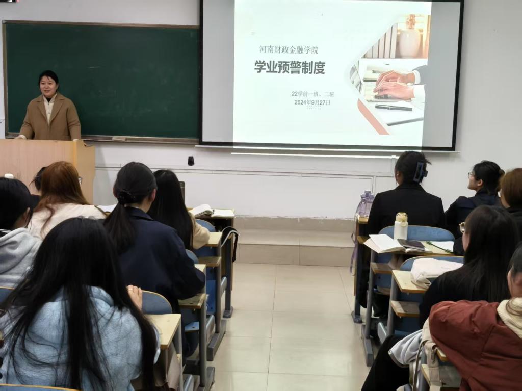 2024年9月27日,22学前一班与二班在启智楼108教室召开学业预警制度学习会,聚焦大三员工的学业发展。