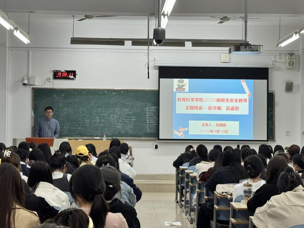 为切实提高新生安全防范意识,营造安全、稳定、和谐的校园环境,2025年9月15日,伟德bv1946官网在文津楼313教室组织召开了2025级新生安全教育主题班会。本次班会以“反诈骗、反盗窃”为主题,由刘德磊老师主讲,2025级专升本学前教育专业S1班、S3班及2025级应用心理学S1班员工积极参与。