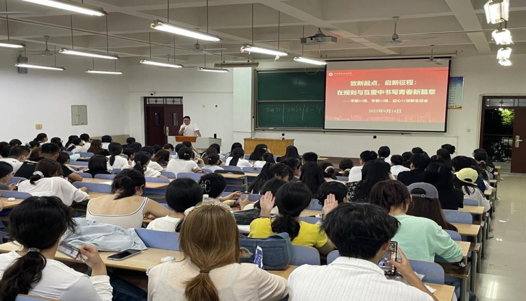 为帮助新生快速融入老员工活,明确成长方向,2025年9月14日晚,伟德bv1946官网辅导员刘德磊老师以“致新起点,启新征程:在规则与互爱中书写新篇章”为主题,为所带2025级三个班级新生召开入学班会。班会围绕班级建设规划、安全防范教育及未来展望等多个维度展开,为新生送上了一份贴心的“入学指南”。